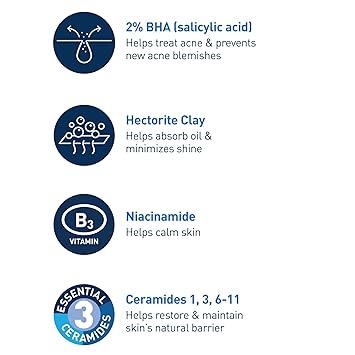 CeraVe Acne Control Cleanser is a gentle yet effective acne face wash formulated with salicylic acid (BHA) to exfoliate dead skin cells, unclog pores, and help treat and prevent acne breakouts. Unlike harsh scrubs, this BHA-based cleanser smooths skin while reducing blackheads and minimizing the appearance of pores.