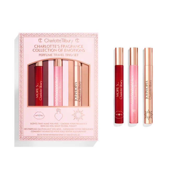 Discover the magic of mood-enhancing fragrance with Charlotte Tilbury’s Fragrance Collection of Emotions Perfume Travel Trio Kit — a luxurious set of three signature scents designed to awaken love, joy, and seduction wherever you go. Each perfume is crafted with emotion-boosting notes to transform your energy and elevate your aura.