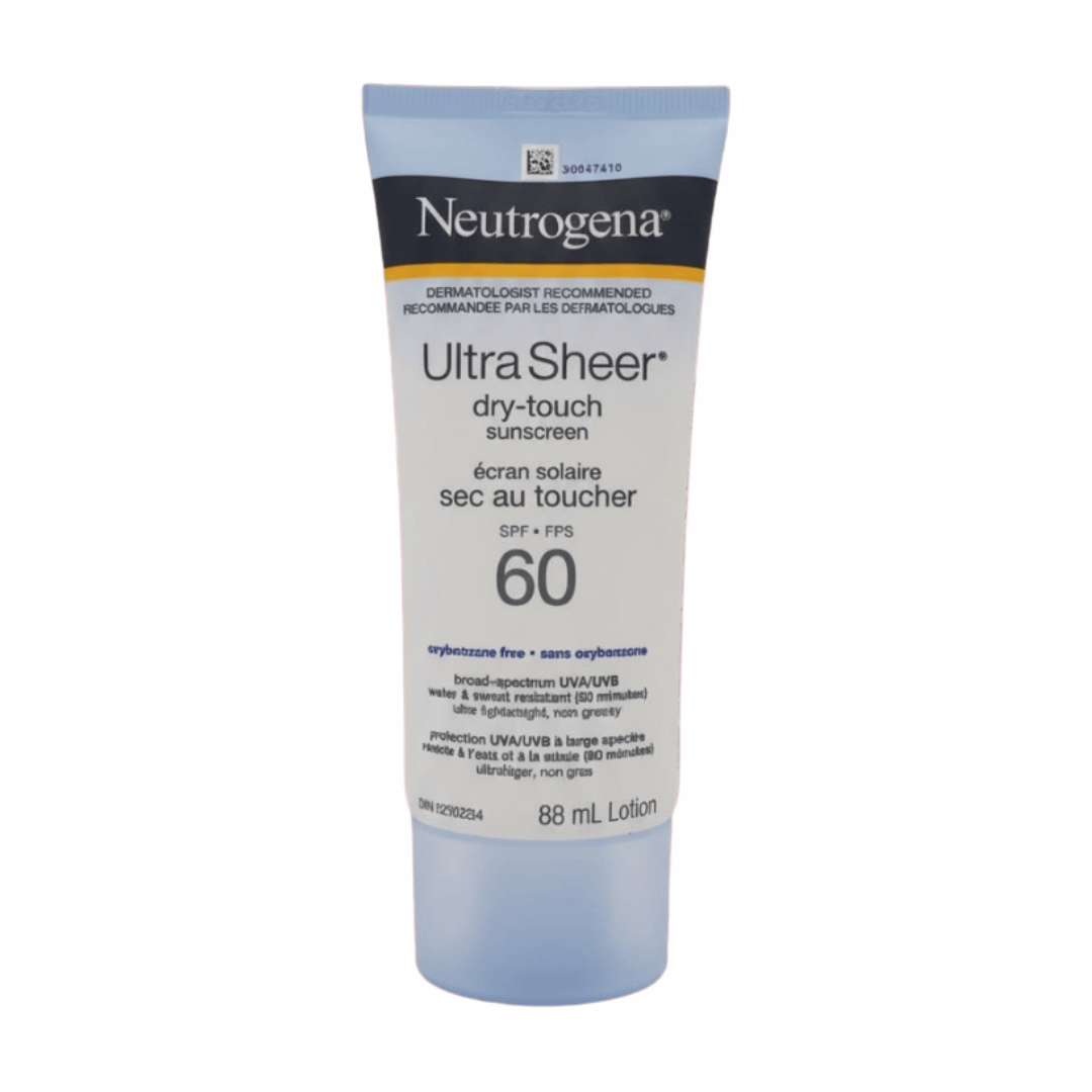 Protect your skin with the Neutrogena Ultra Sheer Dry-Touch Sunscreen SPF 60, an ultra-light, fast-absorbing lotion that shields against harmful UVA and UVB rays. Its broad-spectrum SPF 60 formula is non-comedogenic, leaving skin protected without clogging pores.