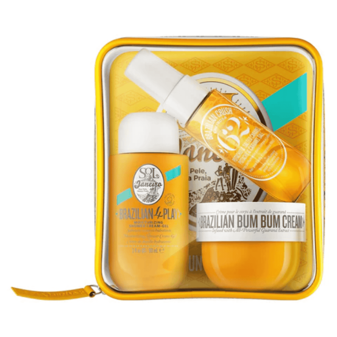 Experience the ultimate Brazilian beauty ritual anywhere you go with the Sol de Janeiro Brazilian Bum Bum Jet Set. This travel-friendly trio features everything you need for visibly tighter, smoother, and hydrated skin — all infused with the iconic Cheirosa 62 fragrance of pistachio and salted caramel.
